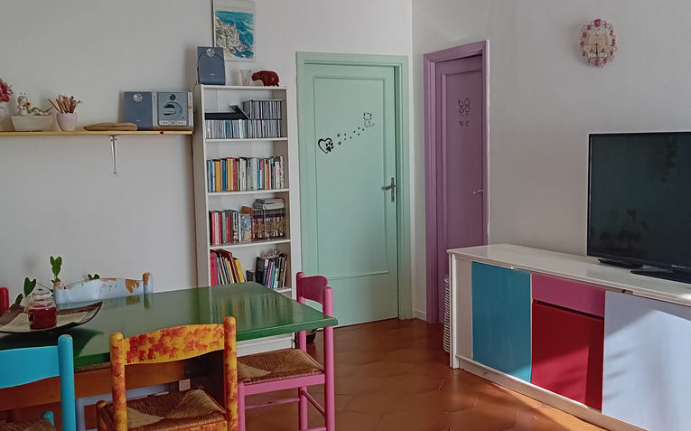- 2 camere: una matrimoniale e una cameretta con letto singolo, pianoforte e terrazzo fresco lato giardino